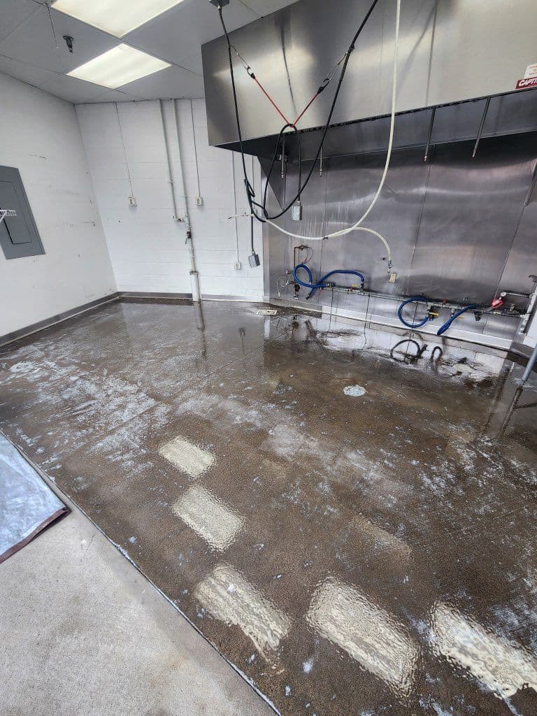 Transforming a busy food stand at the MN State Fair, we've installed a state-of-the-art polyaspartic floor. This durable, shiny coating is tailored for heavy use, ensuring the floor resists wear and tear while maintaining easy cleanability. High foot traffic and daily operations demand a robust solution, and our expertise in epoxy flooring provided just that.